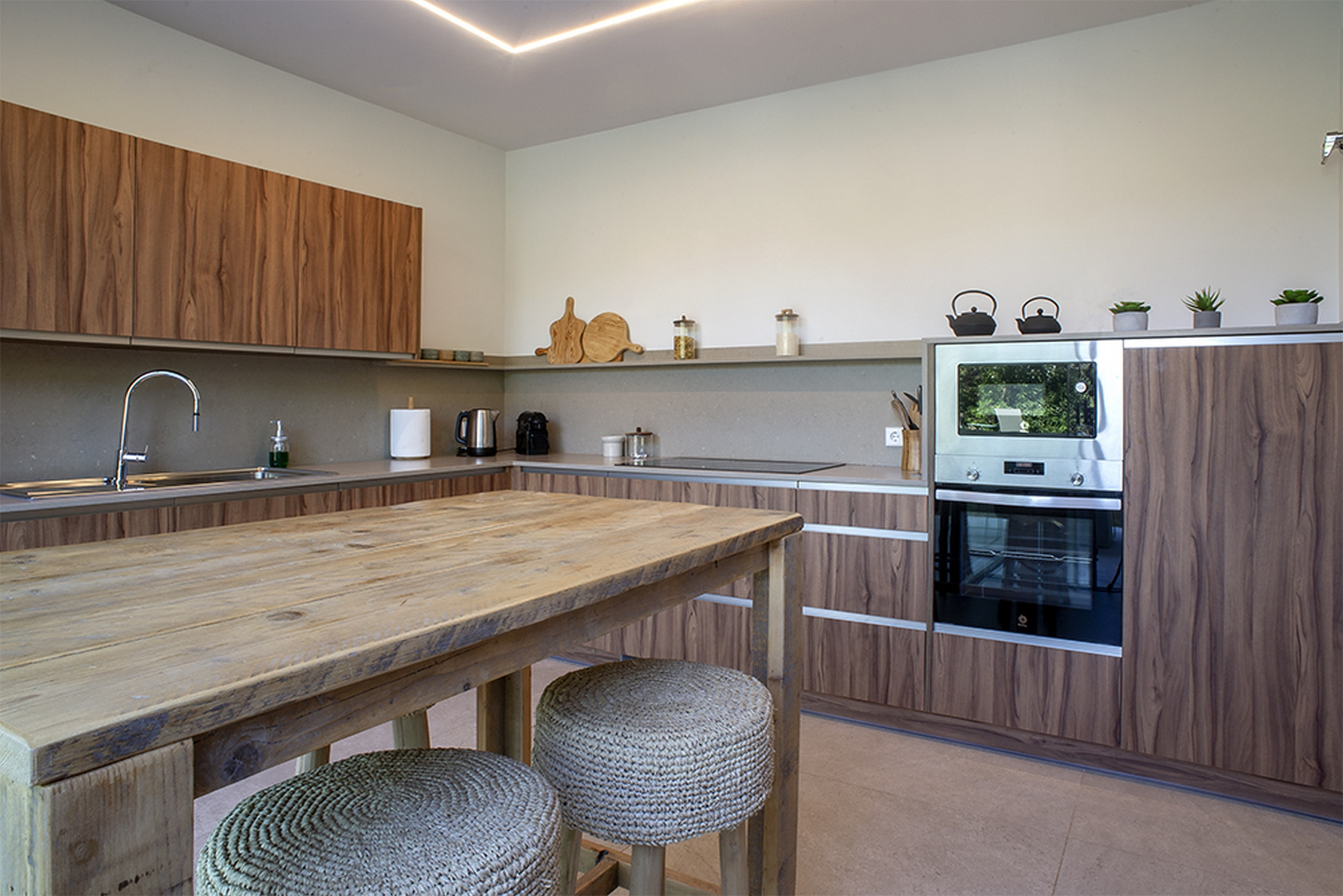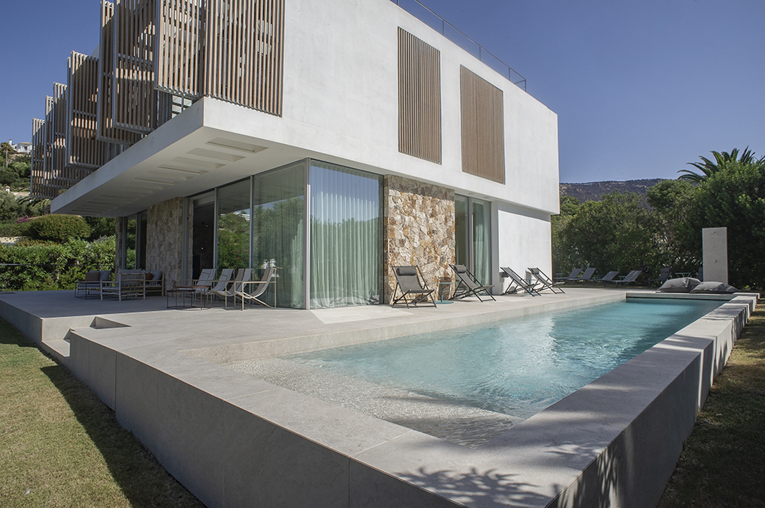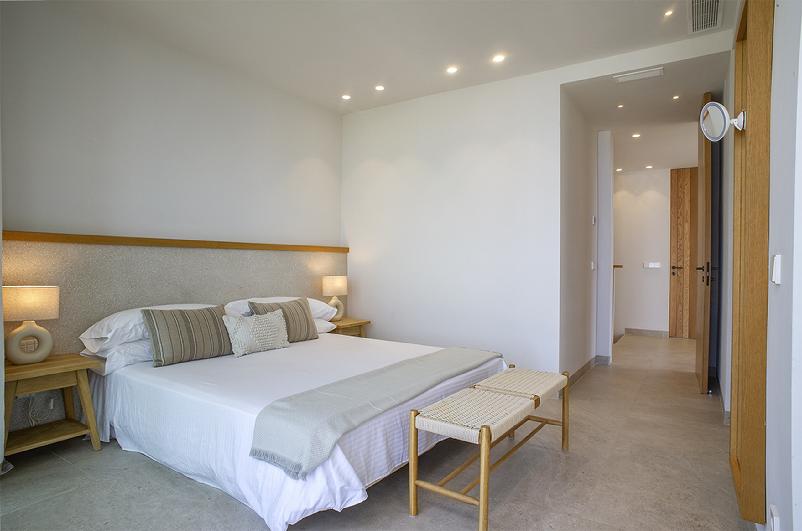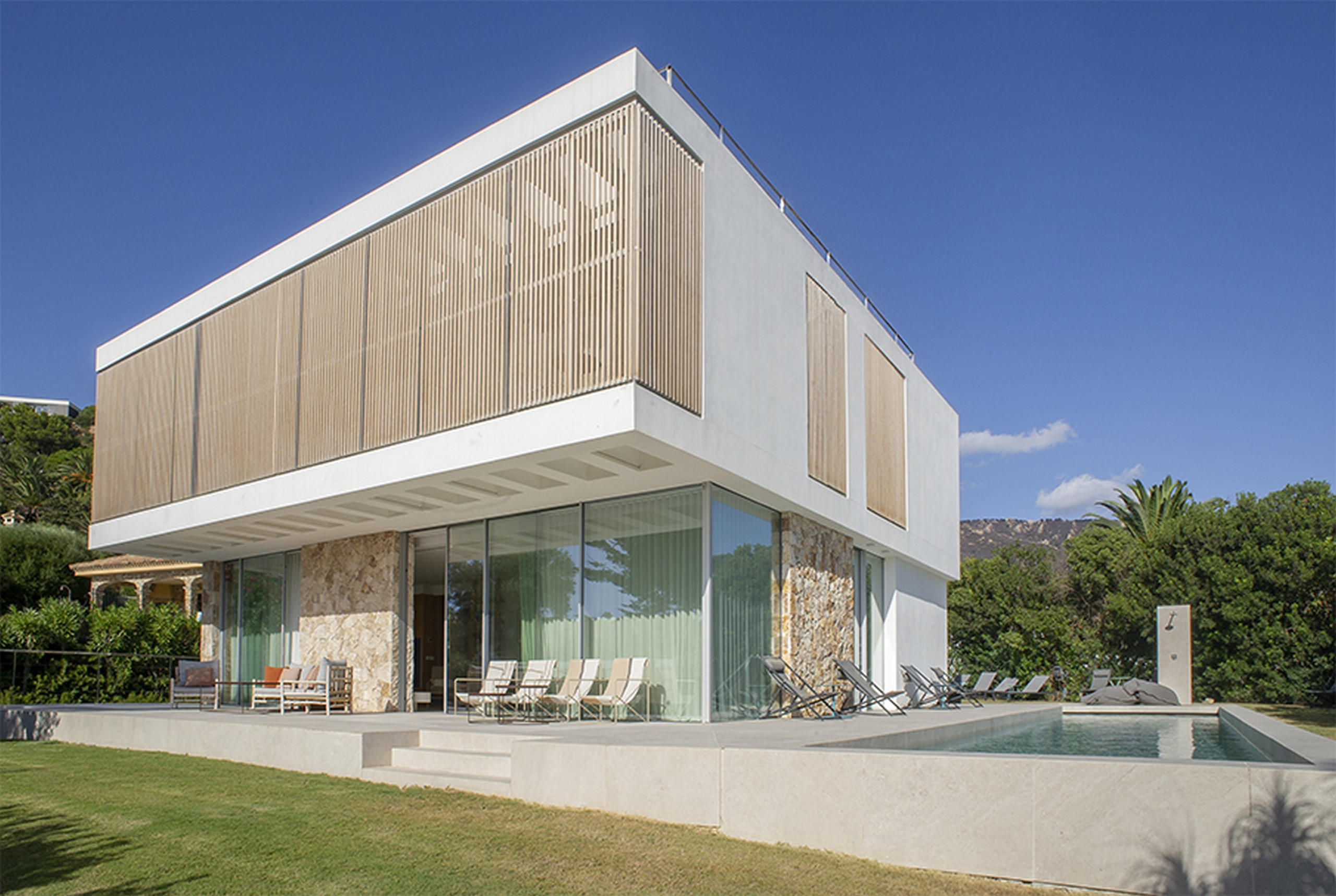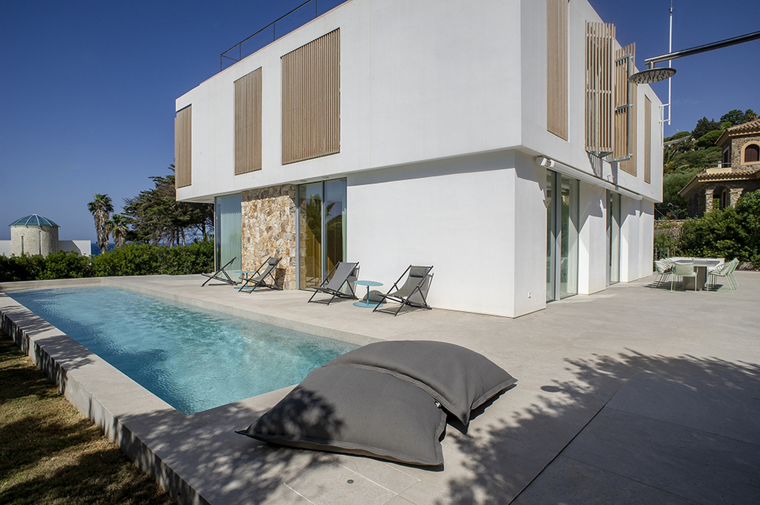 Pensada para acoger entre 10 y 12 personas, esta joya arquitectónica combina líneas modernas, luz natural y un entorno de paz absoluta. La piscina desbordante de agua salada se funde con el horizonte, mientras un amplio jardín abraza la casa y crea un oasis privado donde el tiempo parece detenerse.